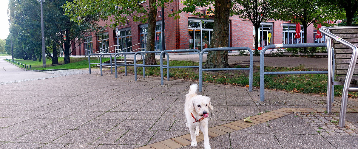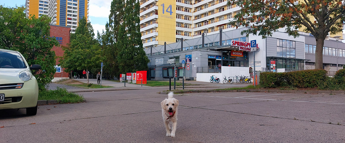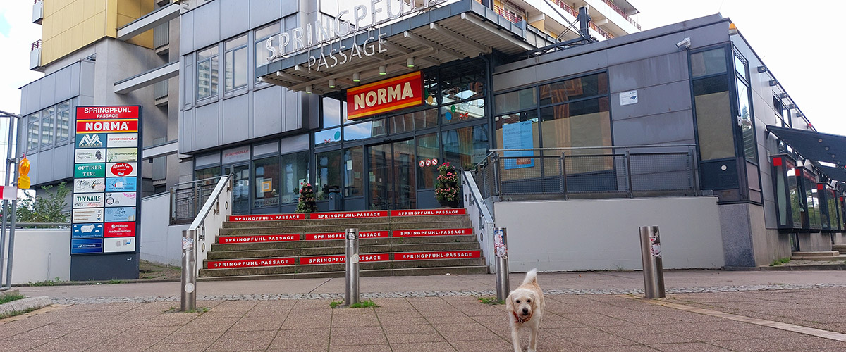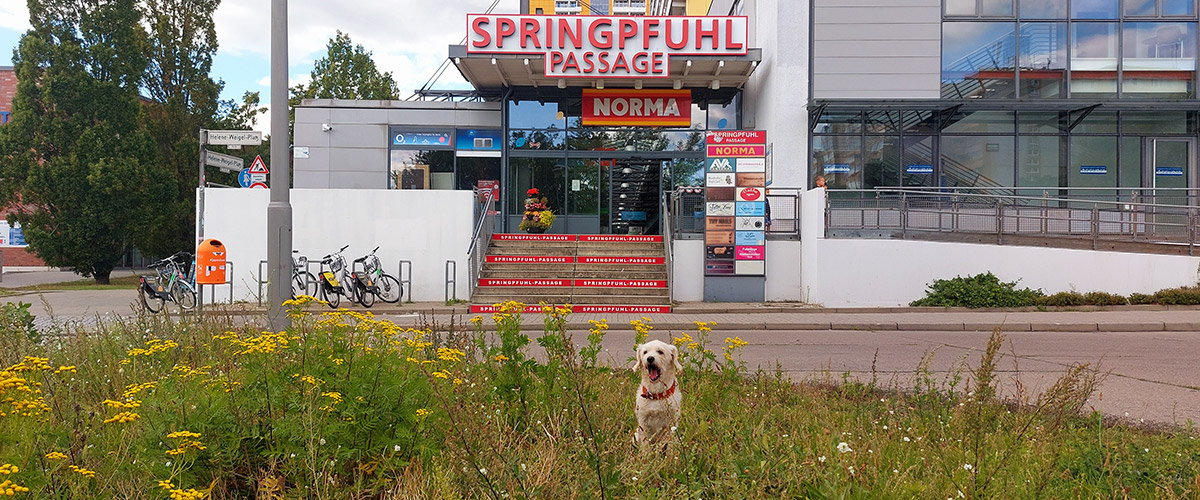 Für die Sportlichen gibt’s Radwege, die direkt zum Helene-Weigel-Platz führen. Fahrradständer sind rund um die Springpfuhl-Passage vorhanden – und im Gegensatz zu unseren Pointen rosten sie nicht.